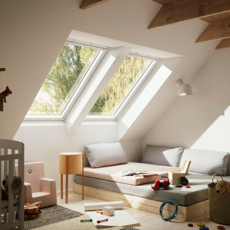 Het VELUX GGU dakraam biedt een perfecte mix van gemak, duurzaamheid en strak design, wat het een uitstekende keuze maakt voor modern wonen. Het top-operated center-pivot design is ideaal voor installatie boven meubels, zoals banken, aanrechtbladen of badkuipen, en de vochtbestendige afwerking zorgt voor langdurige schoonheid in vochtige ruimtes zoals keukens en badkamers.