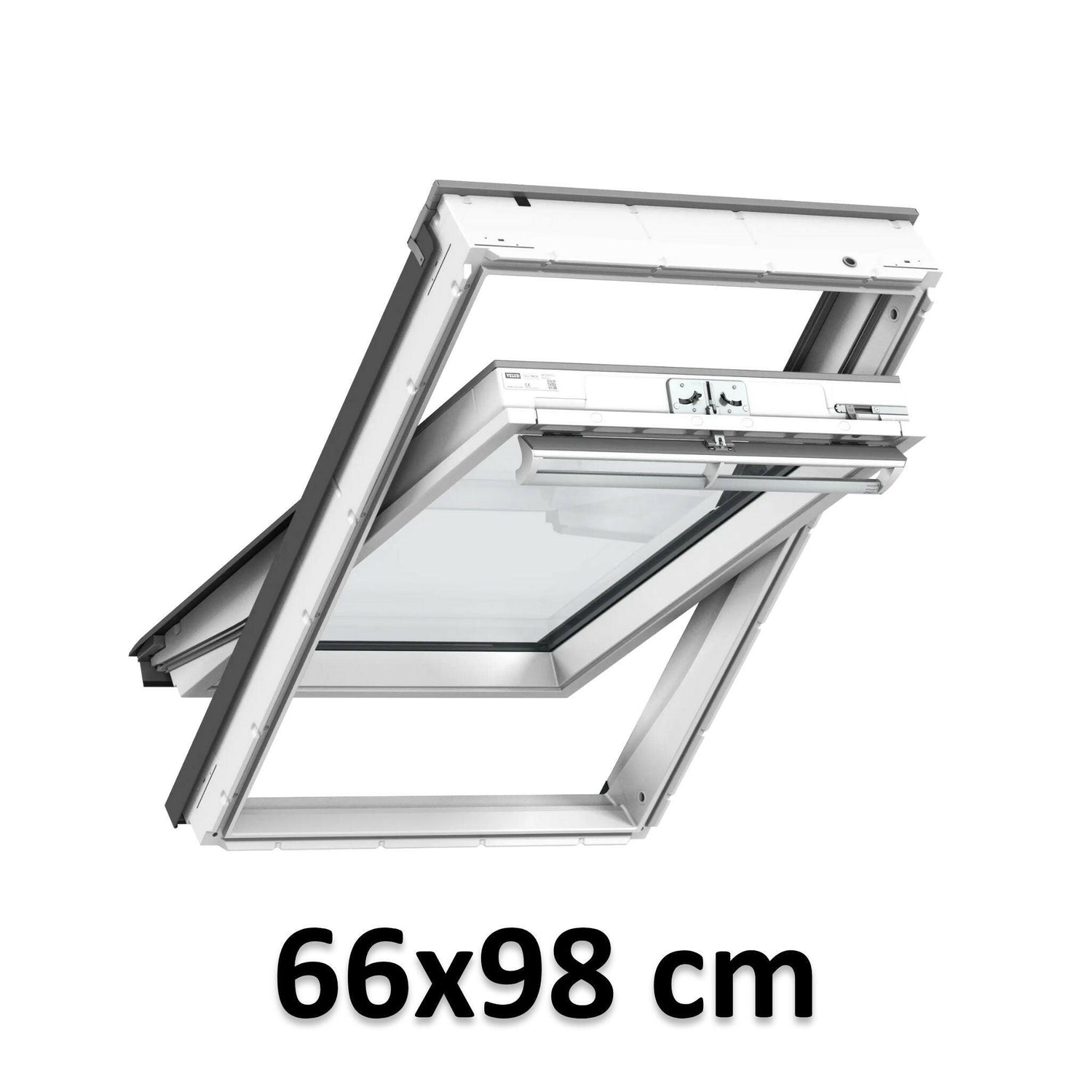 66x98 cm VELUX GGU FK04 0068 Handmatig draai-kiep dakraam | Wit polyurethaan onderhoudsvrij | Driedubbel glas