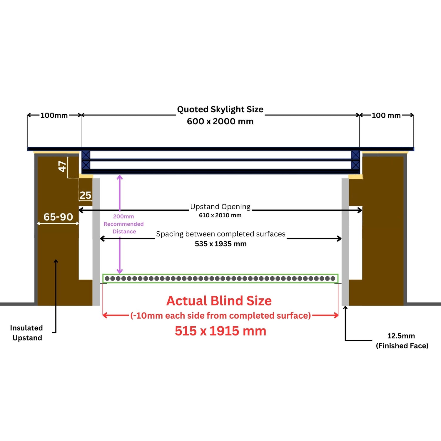 600 x 2000 mm LD Electric Blinds for Flat / Pitched Roof Skylights & Roof Lanterns.