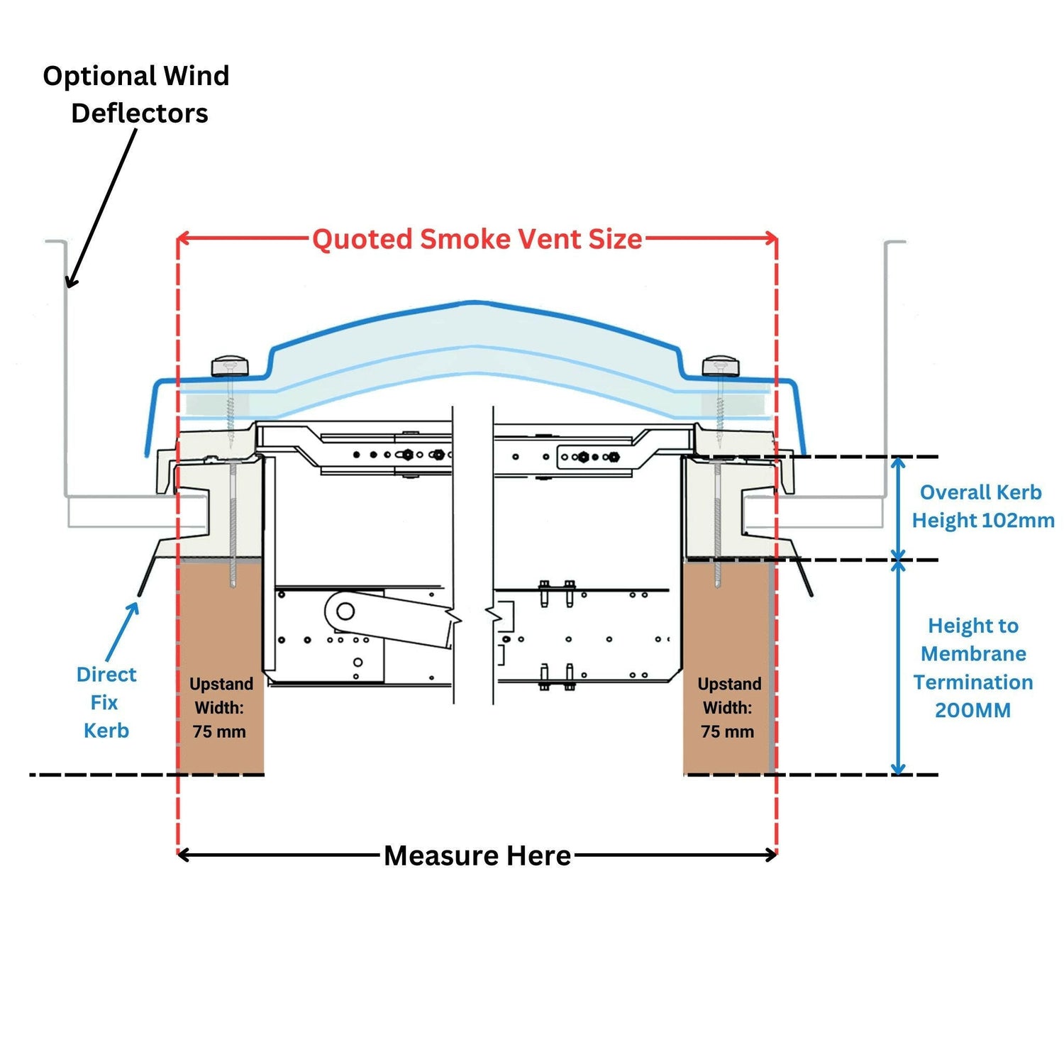 Les lucarnes à évent de fumée Mardome sont conformes au document B approuvé par la réglementation de la construction : sécurité incendie et ont été testées conformément à la norme EN 13501-1 . Ces lucarnes obtiennent une classification au feu B-s1,d0 , ce qui indique une production de fumée minimale et l'absence de gouttelettes enflammées en cas d'incendie. De plus, elles répondent aux exigences d'une classification BROOF(t4) , ce qui leur permet d'être utilisées à n'importe quelle distance des limites sans restrictions sur la propagation du feu externe.